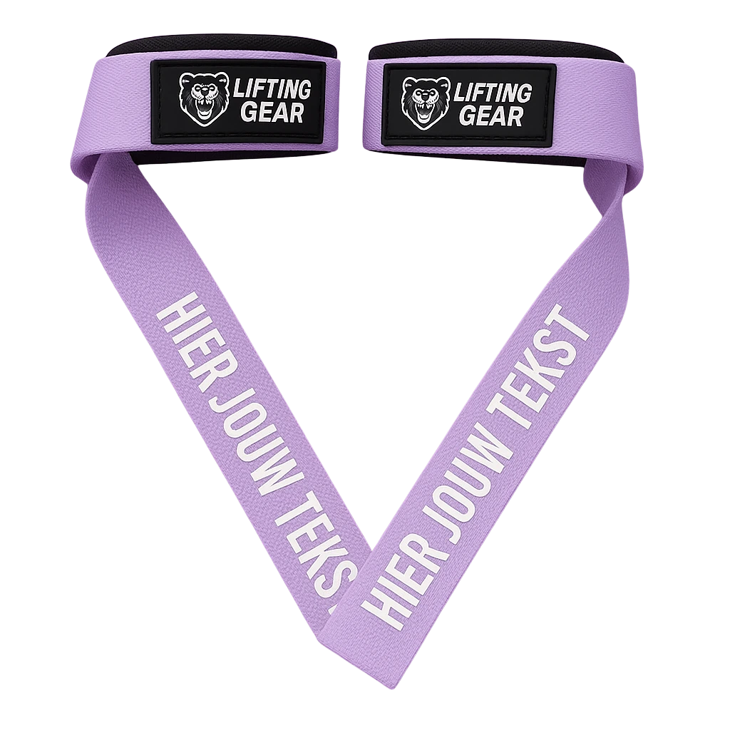 Ga voor grip en stijl met deze paarse/lila lifting straps. Ideaal voor zware trainingen waarbij je handen extra ondersteuning kunnen gebruiken. Ze zitten comfortabel, bieden stevige grip en zijn volledig personaliseerbaar met jouw eigen tekst, naam of logo. Laat zien wie je bent – zelfs tijdens het tillen.